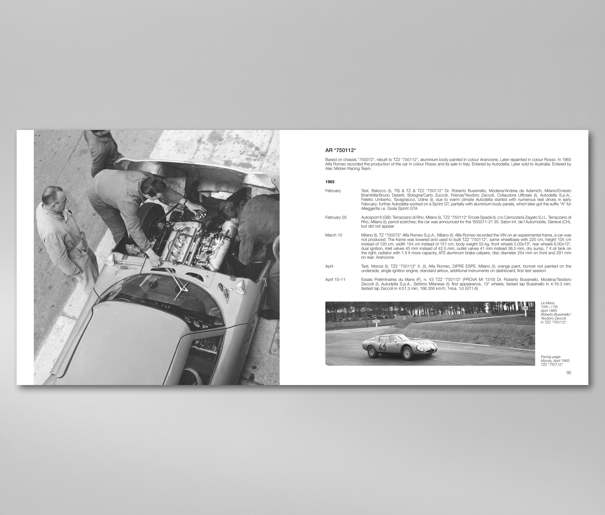 Die ersten zwei Bände dokumentieren ausführlich die Entwicklung der Giulia TZ und die Renngeschichte der Werkswagen.