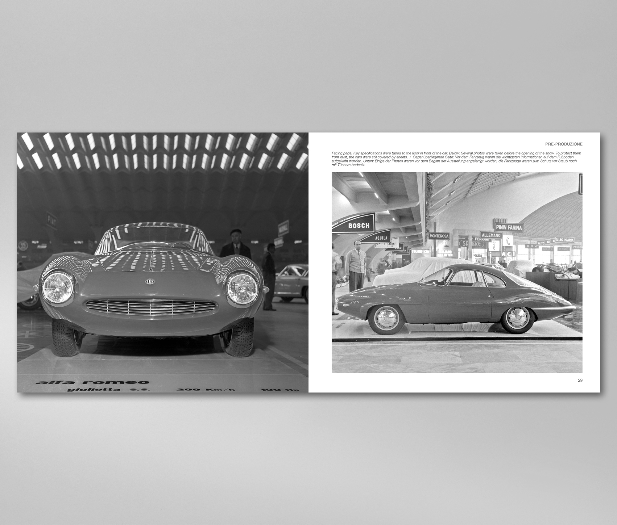 In der Einleitung blickt das Buch dann noch etwas weiter zurück – auf die Alfa Romeo Giulietta Sprint Veloce. Dieses elegante Coupé war auch im Motorsport sehr erfolgreich, ehe aerodynamisch optimierte Varianten von Zagato im Starterfeld auftauchen. Da Bertone noch eine gute Geschäftsbeziehung zu Alfa Romeo hatte, entwickelte man aber gemeinsam den neuen Alfa Romeo Sprint Speciale.