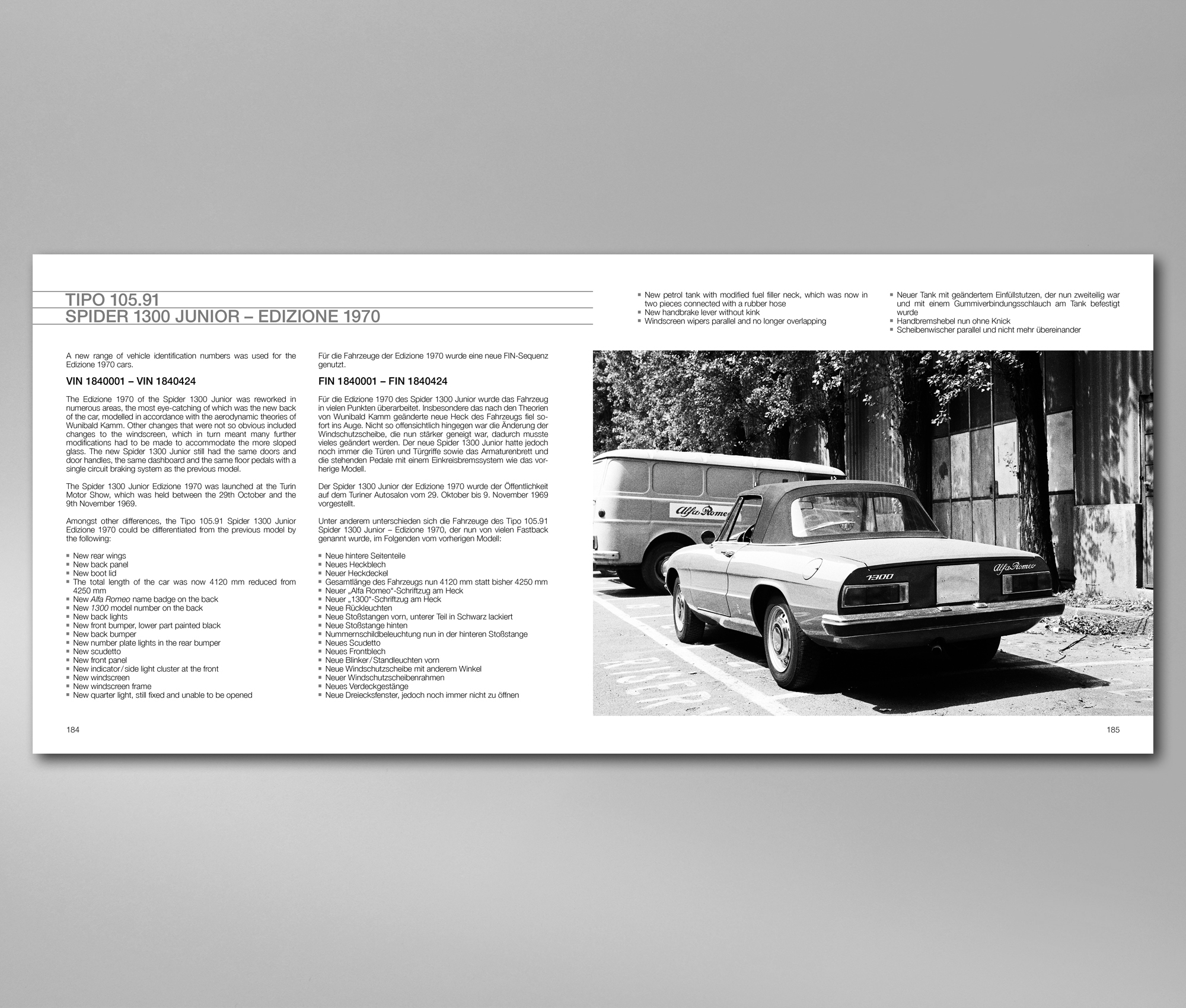 The books run out timewise at about 1977. So looking for detail about S4 Spiders will produce a blank. On the other hand, understanding the evolutions for example of 1300 and 1600 Spiders will give confidence in going to look at one being offered to you. Many owners do not know what exactly they have.