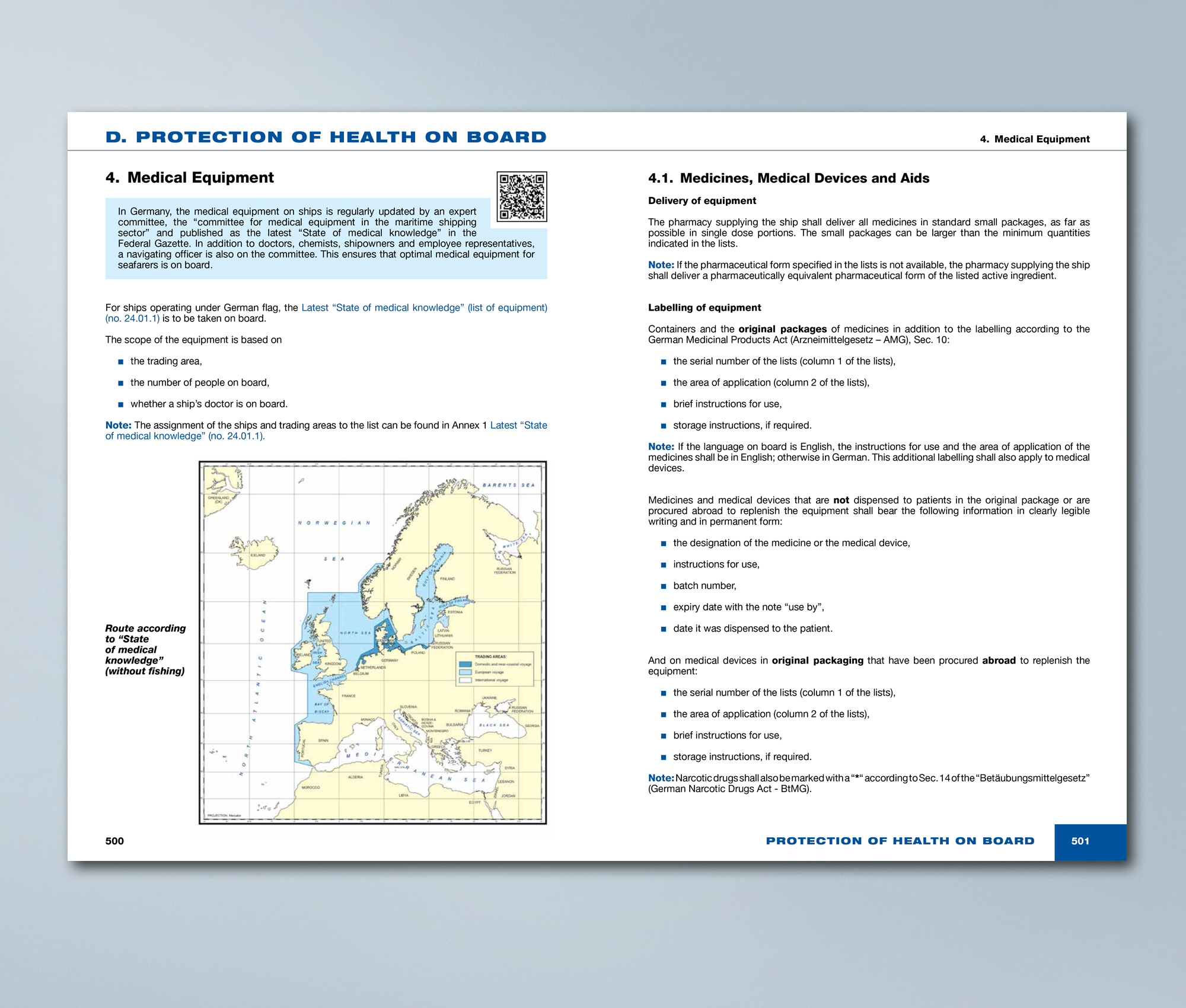 The new Medical Guide for Ships, which instructs the captain and nautical officers on merchant ships operating under a German flag on how to treat illnesses and injuries far away from any medical infrastructure according to a common standard, is a major achievement for the authors and the publisher BG Verkehr.